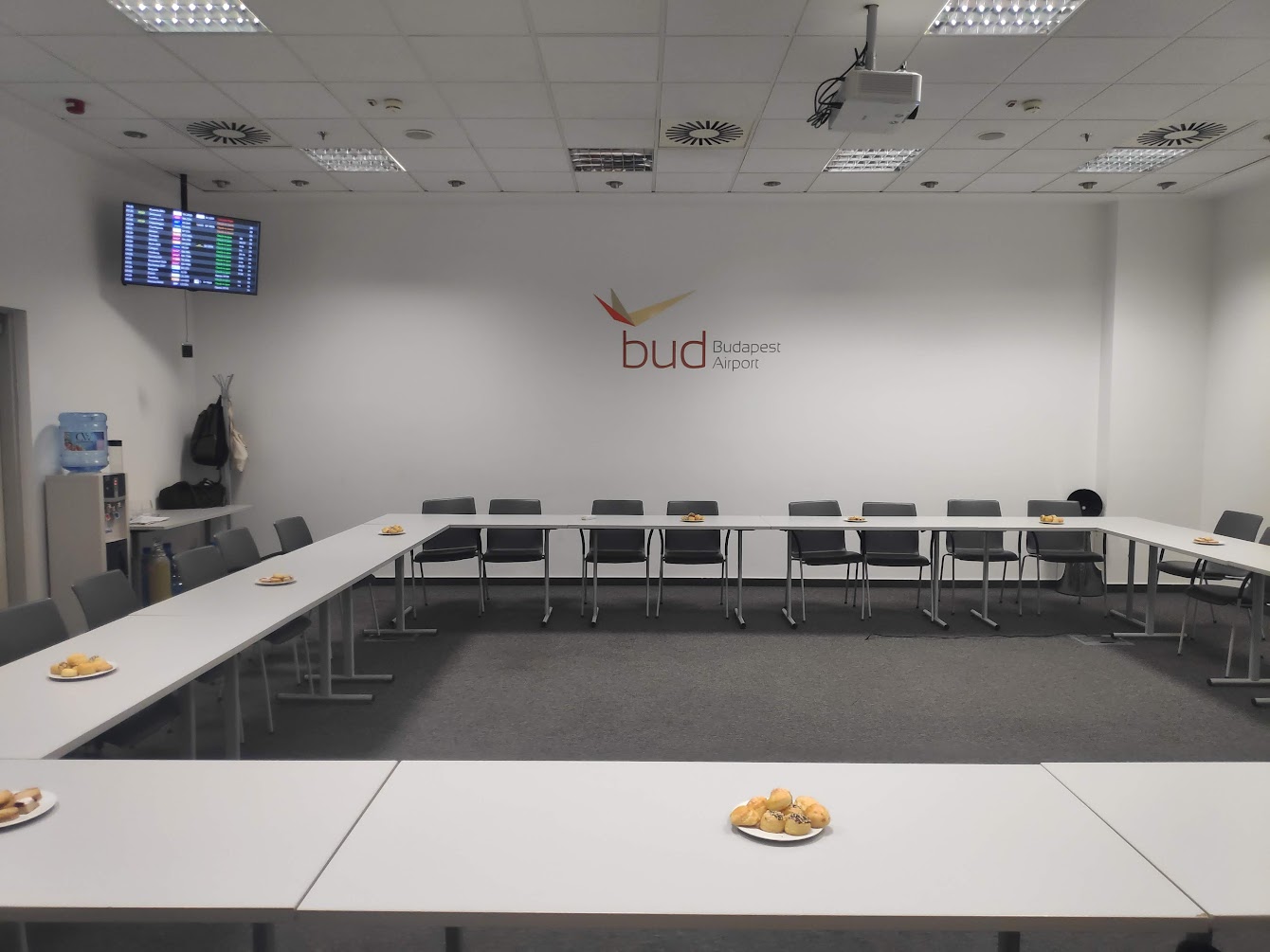 Zoltan greeted us at the exit and guided us to a waiting room that had been reserved for the IOI team’s arrivals. Inside, they provided some snacks and sodas. There was also WiFi, so we could report our arrival to the home country as well.
