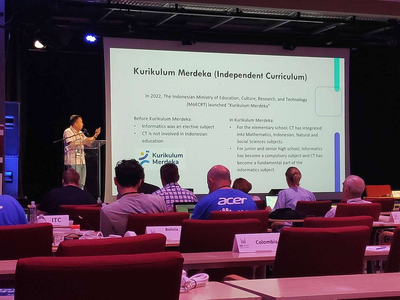 It is finally the contest day! The contest started on time. While the contestants were competing, the leaders went to the IOI conference. To be very blunt, none of the conference topics were interesting. I came mainly to see Brian presenting two reports about the Indonesian team.