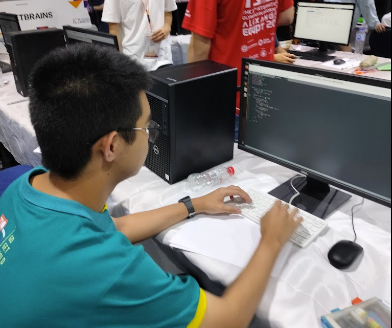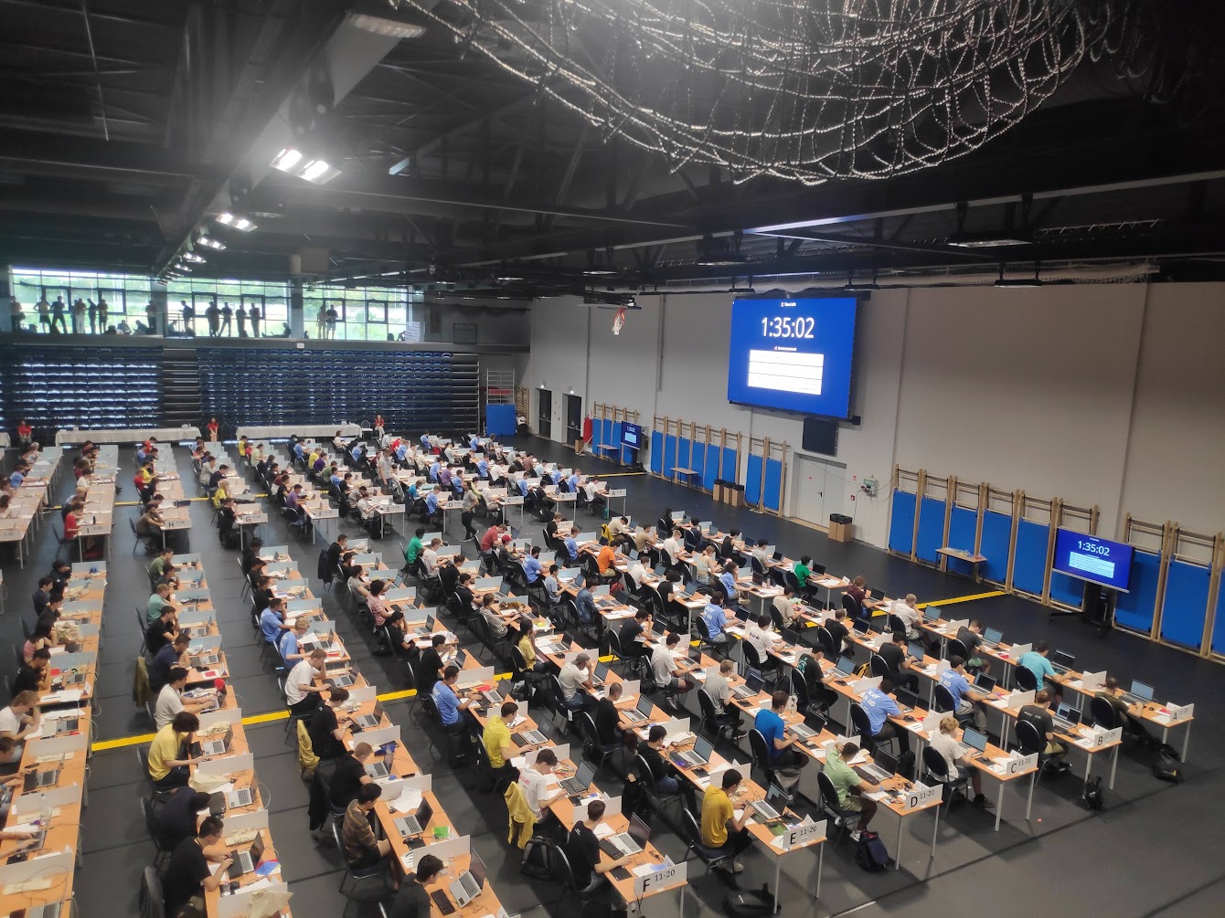 After the conference was over, we went to the contest site. We waited while having our lunch in the dining area. Here, I greeted and was greeted by some familiar people: delegations from PHL, MYS, SGP. Sadly, I recognised far fewer people compared to those who came for IOI 2022. I had some discussions about the problem with kevinsogo who made me feel inferior as he already solved all the problems.