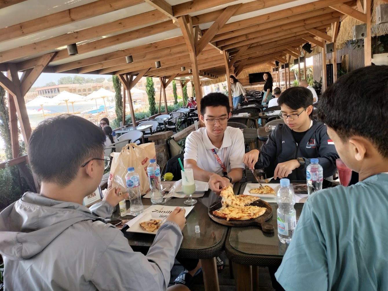 The contest was over, and we guided IDN contestants to the dining area. They did not discuss much about the problems while they were enjoying their lunch. Our guide asked us whether we wanted to join the excursion on the next day, and of course we wanted to! (In fact, if the contestants refused to do so, this may be a bad sign of deteriorating mental condition which may affect contest day 2, IMO, and that actually happened before). There were no more agenda so everyone went back to their own hotels, but I decided to walk the contestants to their hotel.