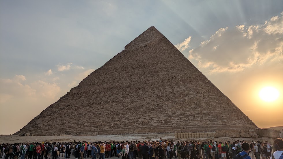 They finally started to call us to board the bus, onto the next destination, the Grand Pyramid of Giza. My bus was one of the first to arrive, so I got to see the view before it was crowded. The surroundings of the pyramid was quite smelly, and it was quite hard to walk around it.