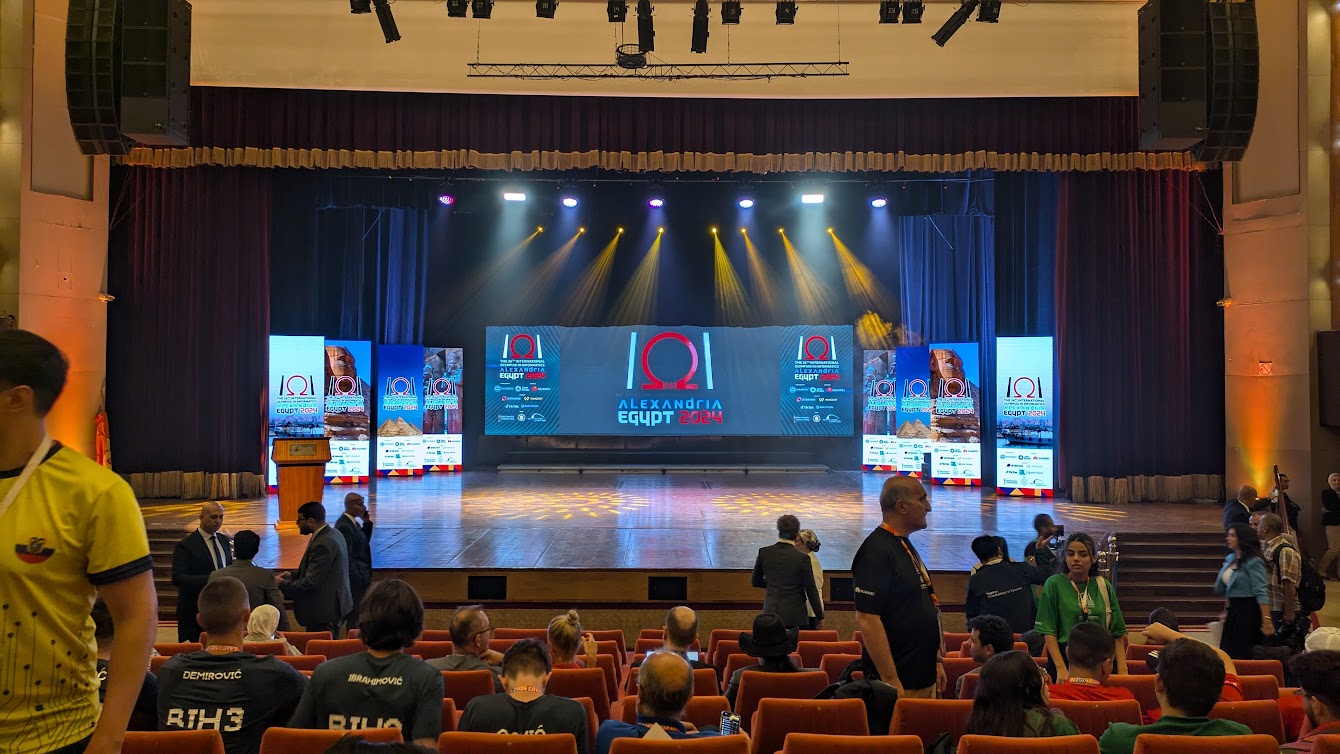 In the opening hall, a Nigerian team leader approached me to ask about their IOI 2022 certificates, for which I delegated the matter to Brian. The opening ceremony started, and was followed by mentioning each team one by one, with the neighbouring Arabic countries receiving a more grand mention.