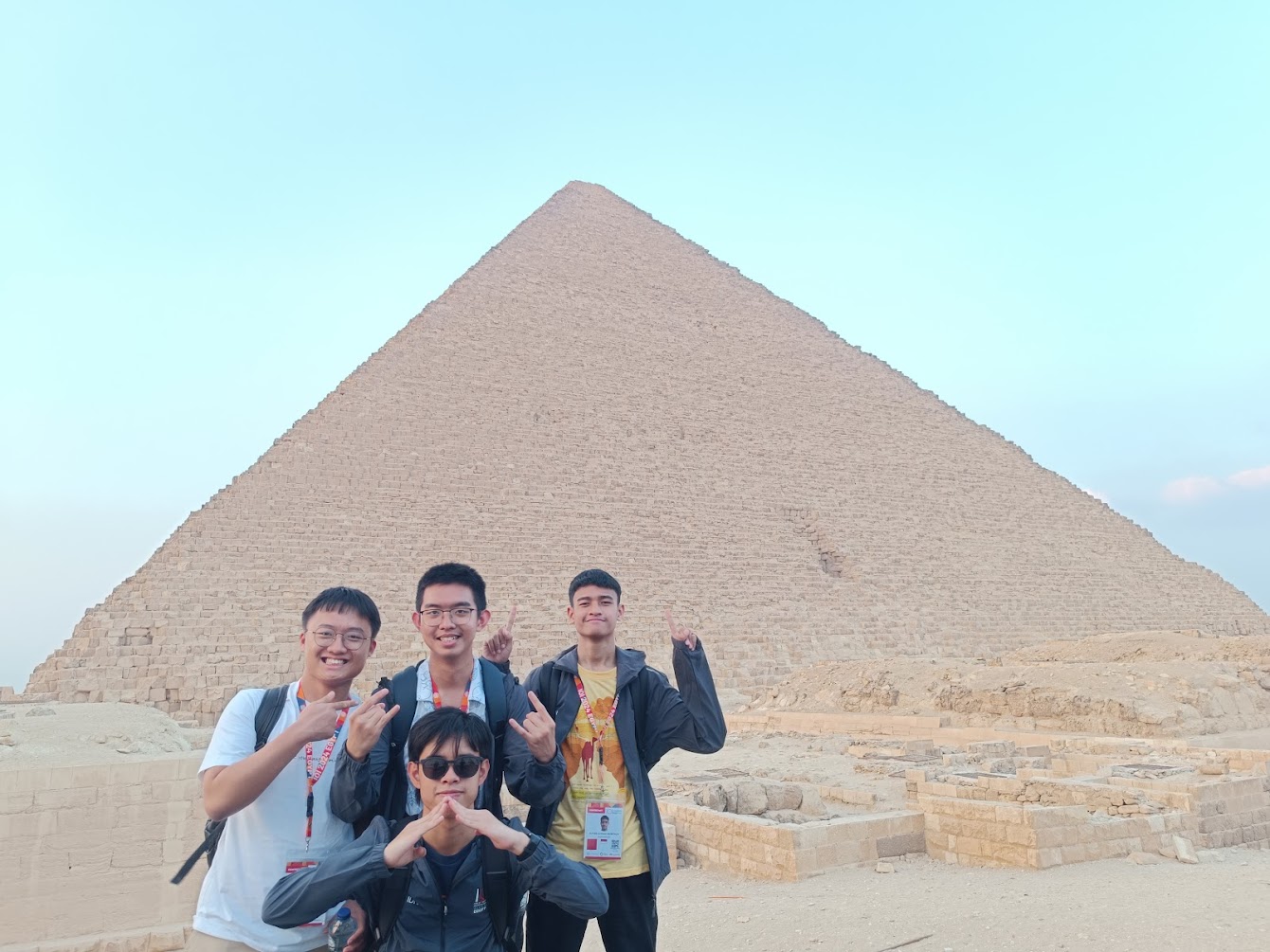 The Indonesian team in front of a pyramid.
