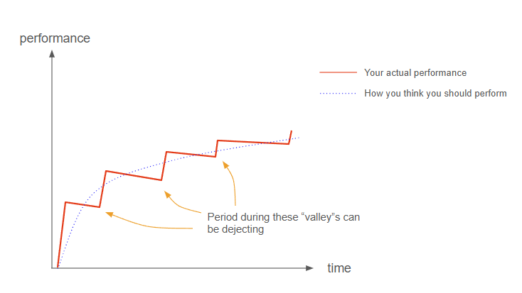 So do not be demotivated when you can’t seem to improve even when you were very near to your next milestone. It might be that you have unfortunately hit your next wall that is very near to your milestone.