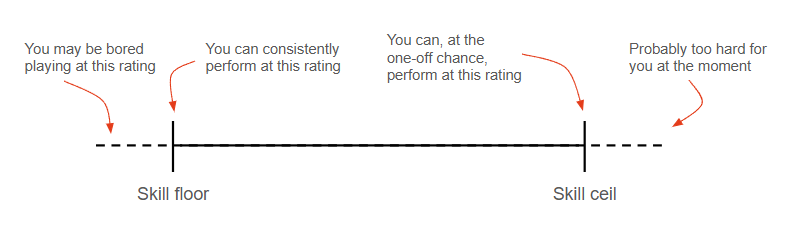 With that said, I do believe your current skill level can’t actually be defined as a single number, but more accurately with a range. Your current rating must be somewhere in that range.